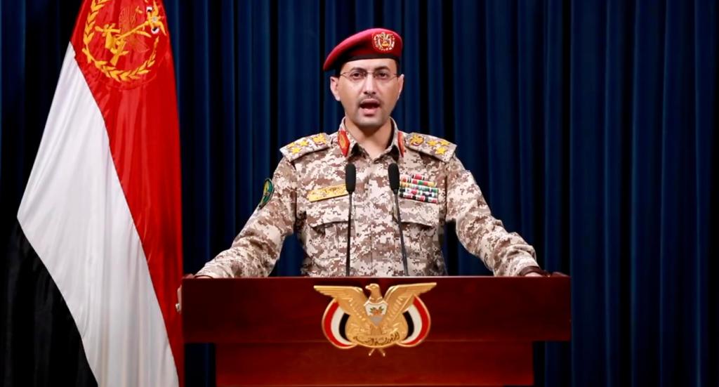 這張4月27日的視頻截圖顯示,也門胡塞武裝發(fā)言人葉海亞·薩雷亞在薩那發(fā)表聲明。新華社發(fā)