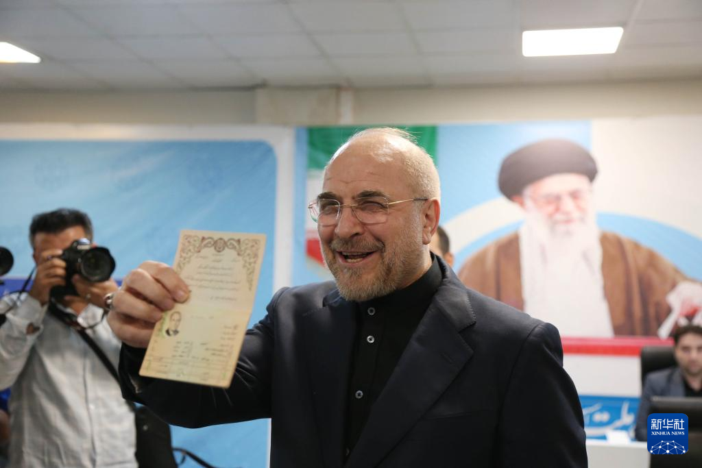 6月3日,伊朗議會議長卡利巴夫在德黑蘭參加伊朗總統(tǒng)選舉候選人登記。?新華社記者 沙達提 攝