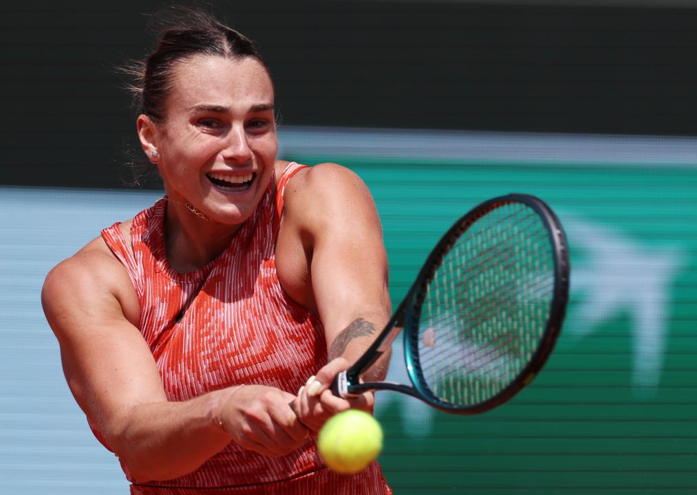 6月3日,薩巴倫卡在比賽中回球。新華社記者 高靜 攝
