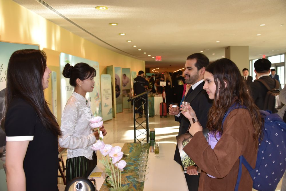 2024年5月21日,在位于紐約的聯(lián)合國(guó)總部,人們參加“茶和天下”國(guó)際茶日展示和慶?;顒?dòng)。新華社記者王建剛攝
