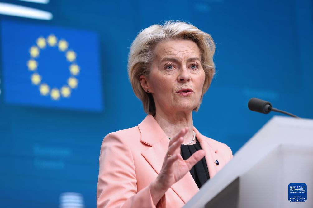 這是3月21日在比利時布魯塞爾拍攝的歐盟委員會主席馮德萊恩出席新聞發(fā)布會。新華社記者 趙丁喆 攝