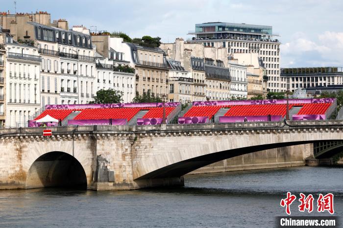 當(dāng)?shù)貢r(shí)間7月21日,巴黎奧運(yùn)會開幕在即,圖為塞納河上的觀眾席。 中新社記者 富田 攝