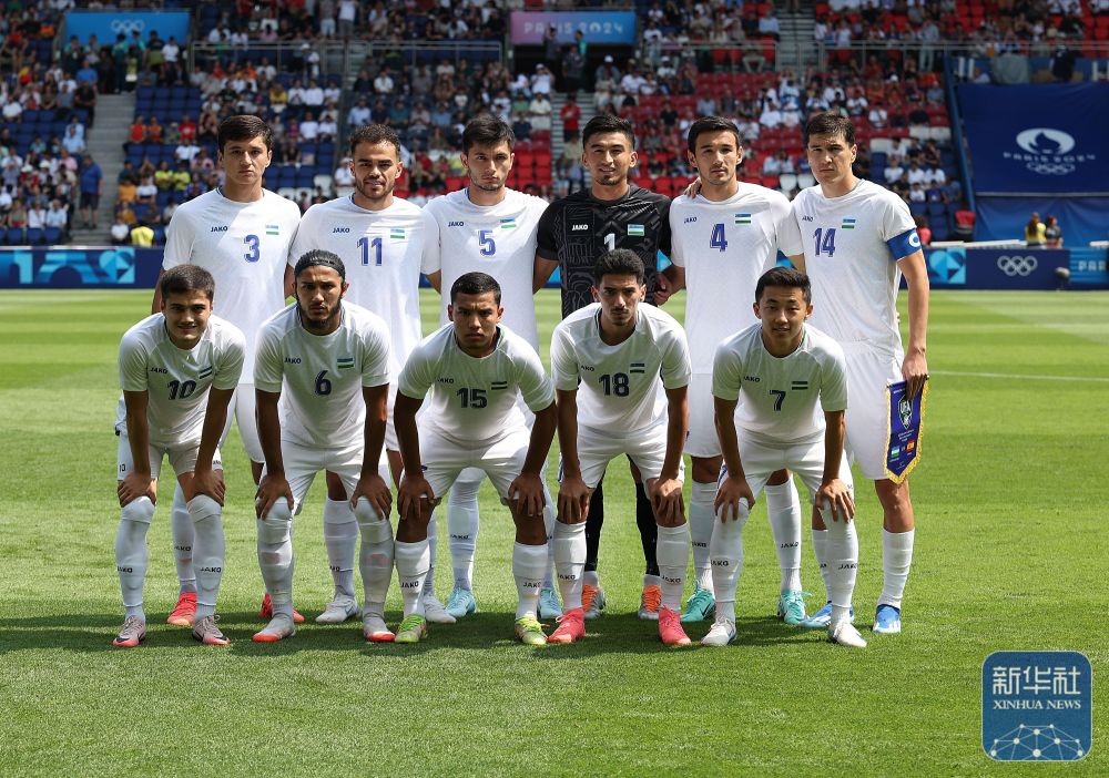 烏茲別克斯坦隊(duì)首發(fā)球員在賽前合影。新華社記者 黃宗治 攝