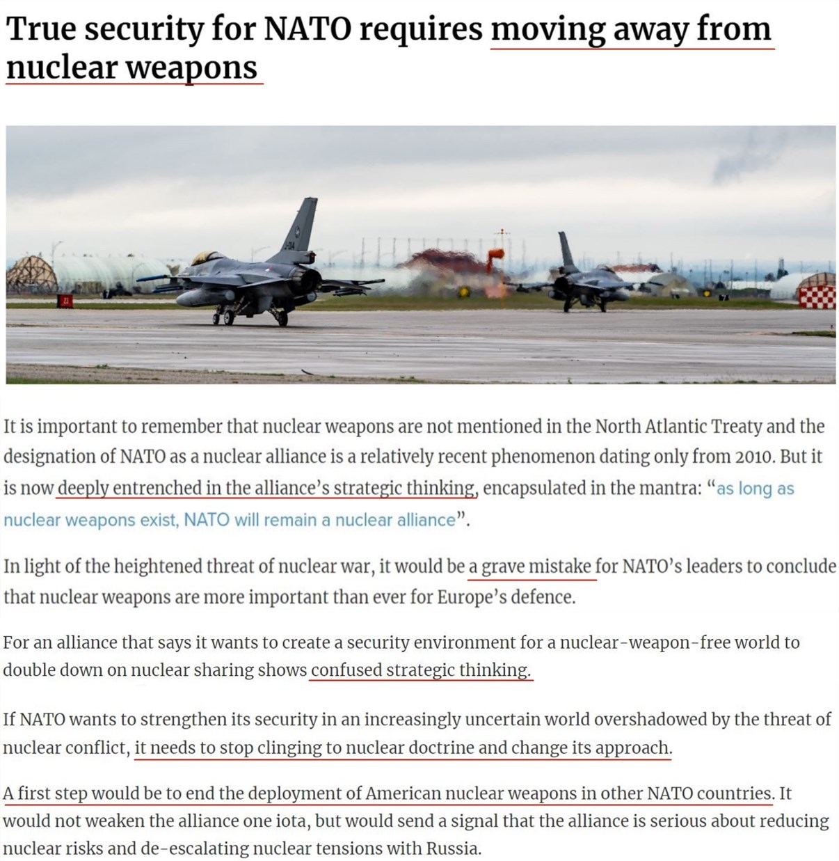 “北約想要安全就必須遠(yuǎn)離核武器”