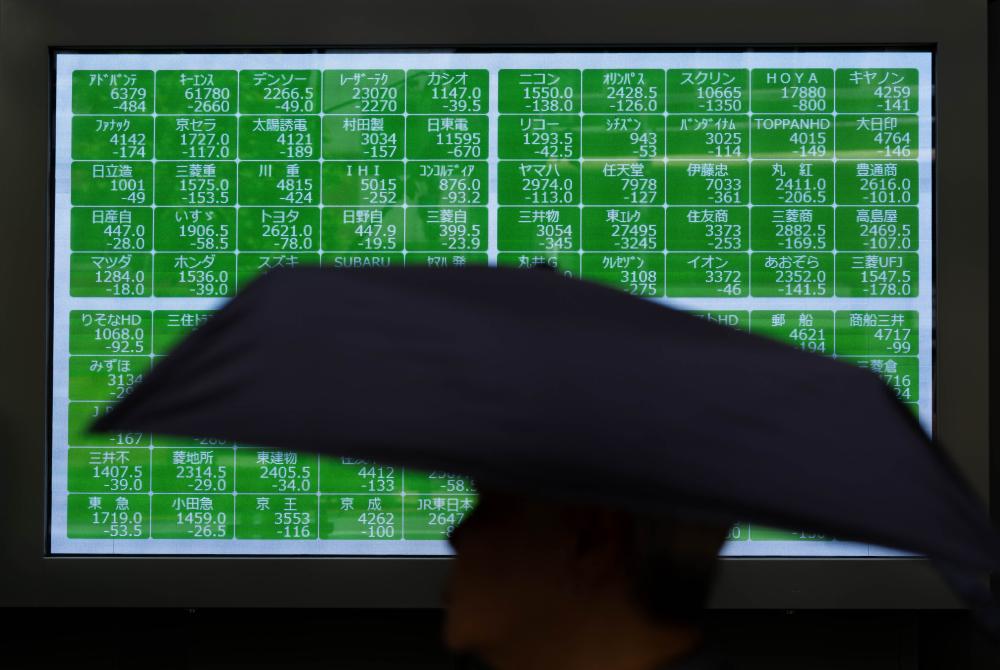 8月2日,在日本東京,行人經(jīng)過一處股指信息電子顯示屏。新華社記者張笑宇攝