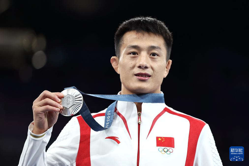 8月5日,亞軍中國(guó)選手何冰嬌在頒獎(jiǎng)儀式上。新華社記者 任正來 攝