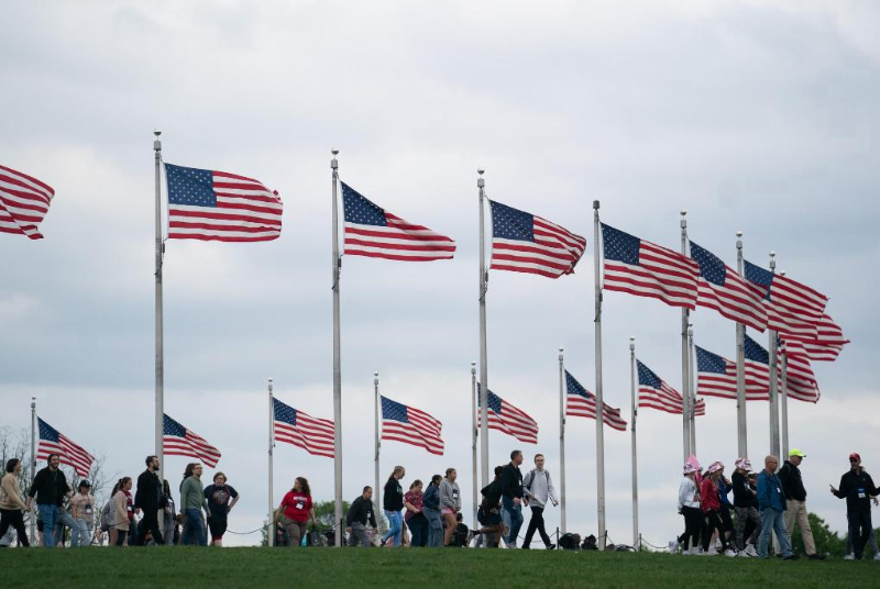 4月25日,游客在美國首都華盛頓的國家廣場游覽。新華社記者劉杰攝