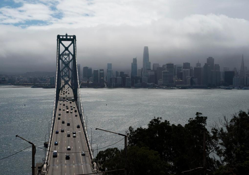 2023年9月1日,車輛行駛在美國舊金山海灣大橋。新華社發(fā)(李建國攝)