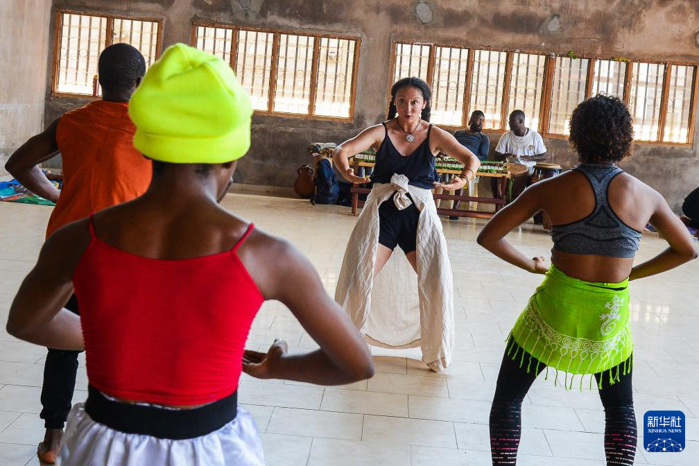 2月14日,在喀麥隆首都雅溫得,中國(guó)舞蹈演員蔣可鈺(中)指導(dǎo)當(dāng)?shù)匚枵呔毩?xí)。 新華社發(fā)(科普索攝)