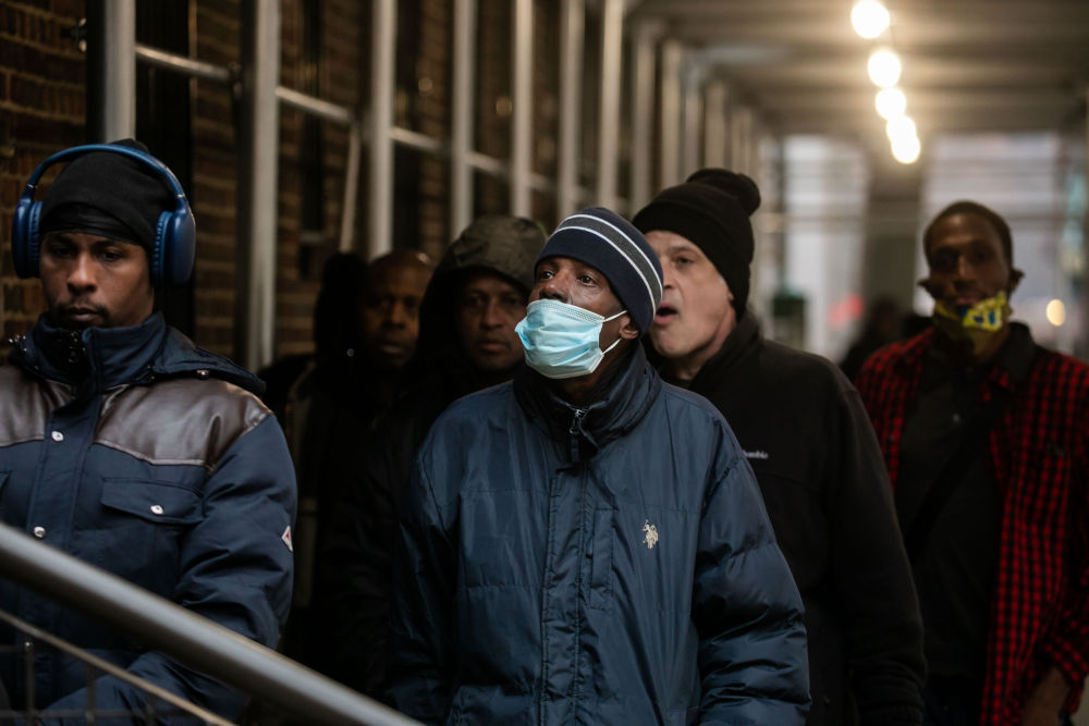 2023年12月24日,在美國紐約,民眾在“紐約公共食品儲藏室”排隊領(lǐng)取免費食品。新華社發(fā)(郭克攝)