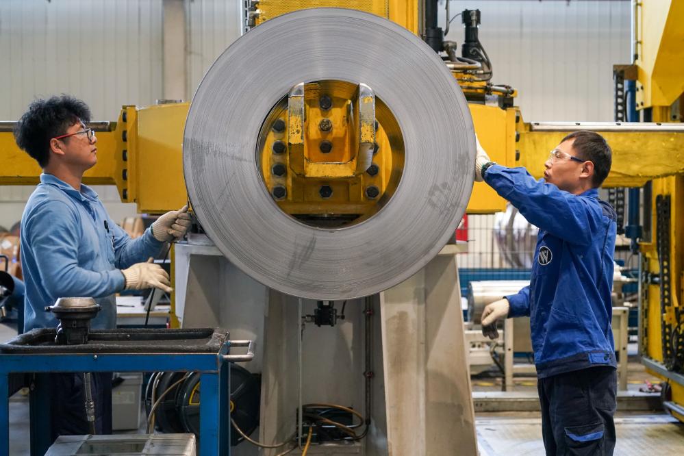 2023年3月16日,工人在位于太倉(cāng)市高新區(qū)的威爾斯新材料(太倉(cāng))有限公司生產(chǎn)車間內(nèi)進(jìn)行加工作業(yè)。新華社記者李博攝