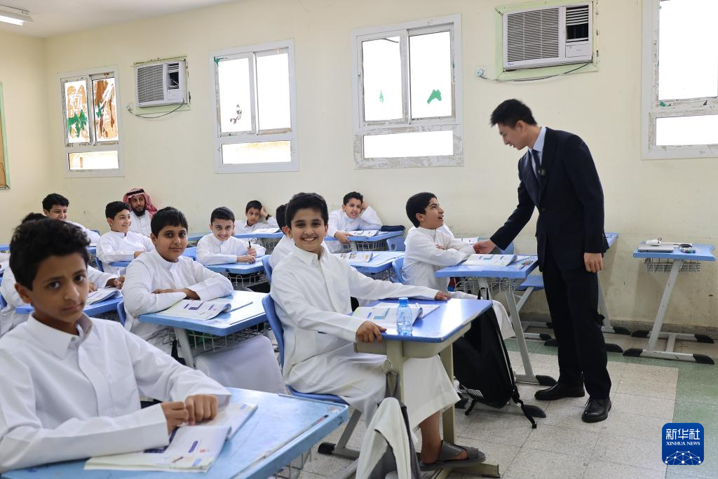 “你好”“老師好”……在沙特阿拉伯首都利雅得北部的一所中學(xué),17名身著阿拉伯白袍的學(xué)生正跟著中文老師史肖一遍遍誦讀著新學(xué)到的內(nèi)容,讀書聲里洋溢著快樂(lè)。