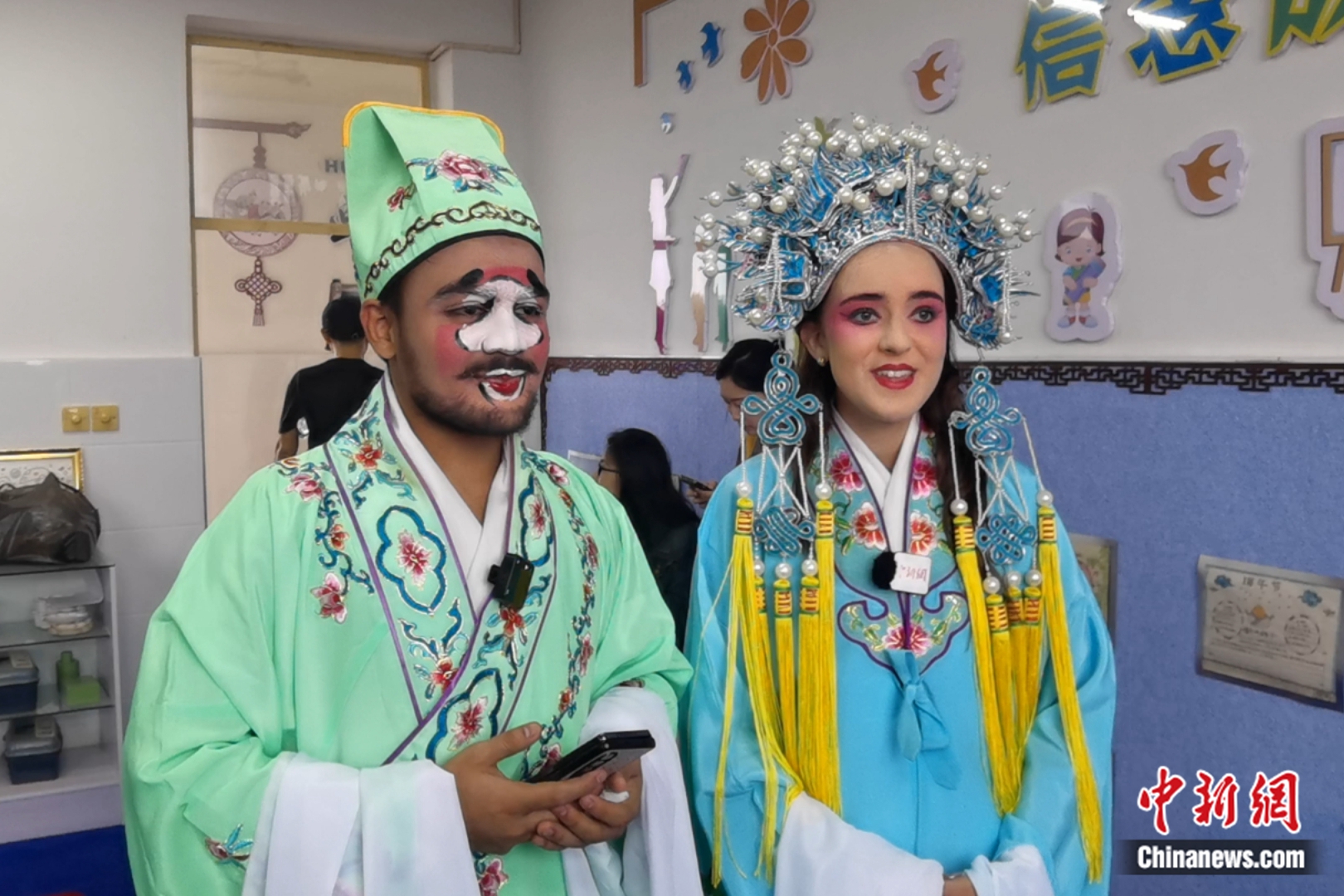 當(dāng)“洋弟子”遇上中國北方昆曲,他們之間會碰撞出怎樣的火花?在高陽縣河西村小學(xué),“洋弟子”們穿上戲服、化上戲妝,在老師的指導(dǎo)下認真學(xué)習(xí)北方昆曲的唱腔與身段。