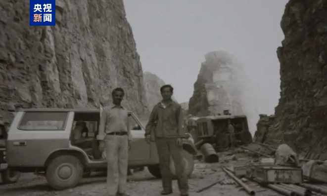 △海耶飛(左)在薩那——哈杰公路施工時的照片