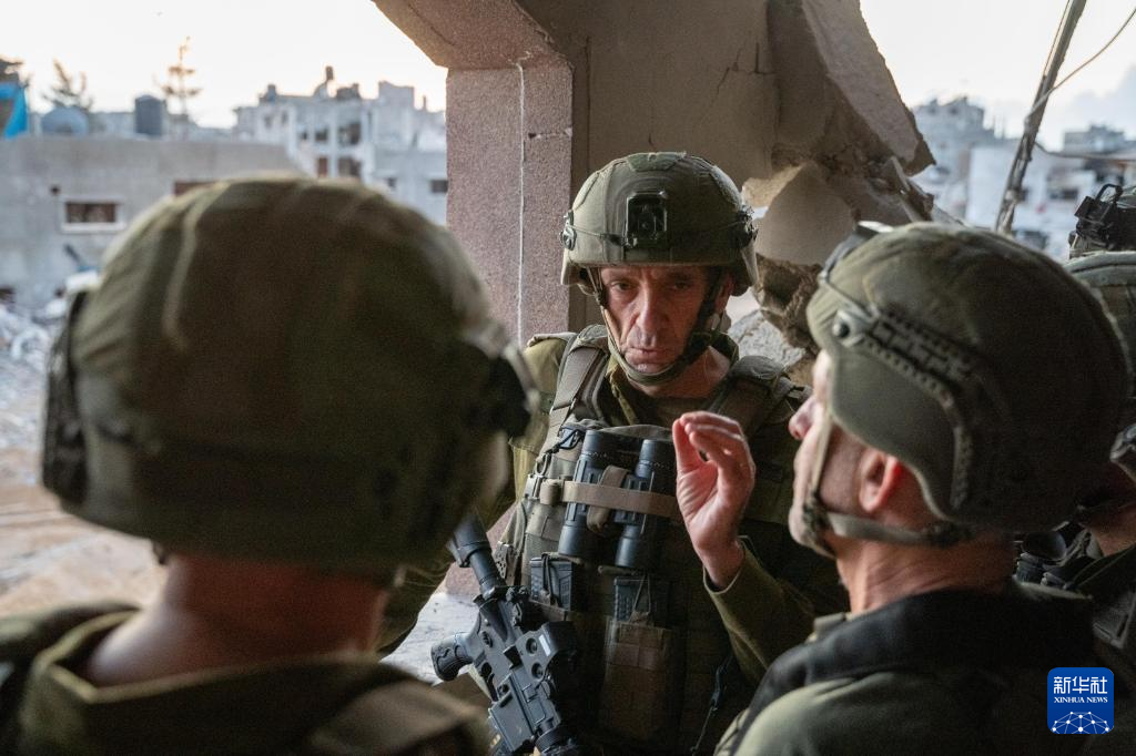 10月17日,以色列國防軍總參謀長哈萊維(中)在加沙地帶辛瓦爾死亡地點附近視察。新華社發(fā)(以色列國防軍供圖)