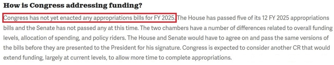 和以往一樣,白宮今年3月提出的2025財年預(yù)算案包含需要由國會中不同撥款委員會審批、分別為政府各機構(gòu)提供資金的12項撥款計劃,但這些年度撥款計劃迄今無一被國會通過。
