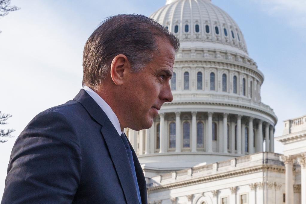 2023年12月13日,在美國華盛頓,美國總統(tǒng)拜登的兒子亨特·拜登舉行記者會后從國會大廈前經(jīng)過。新華社發(fā)(亞倫 攝)