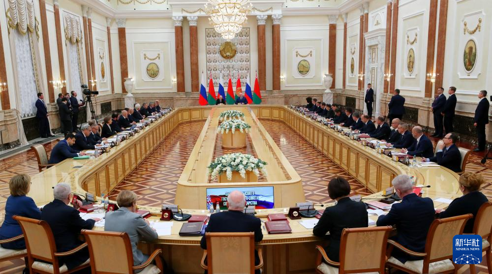 12月6日,俄羅斯和白俄羅斯聯(lián)盟國家最高國務(wù)委員會在白俄羅斯明斯克召開會議。新華社發(fā)(任科夫攝)