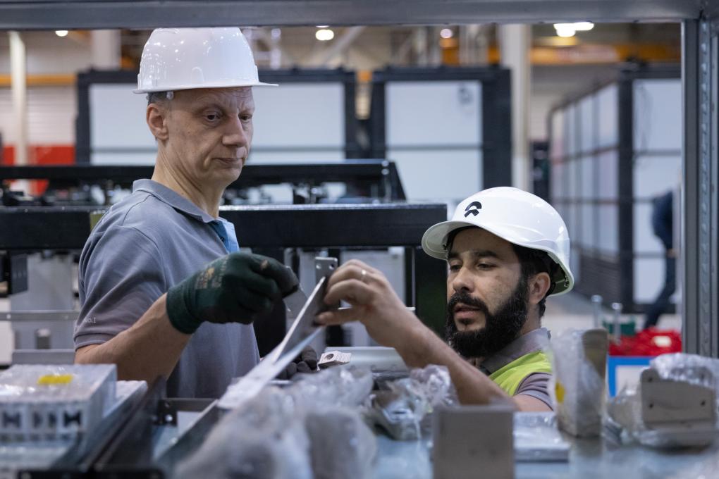 1月26日,在匈牙利比奧托爾巴吉,員工在蔚來能源歐洲工廠工作。新華社發(fā)(弗爾季·奧蒂洛攝)