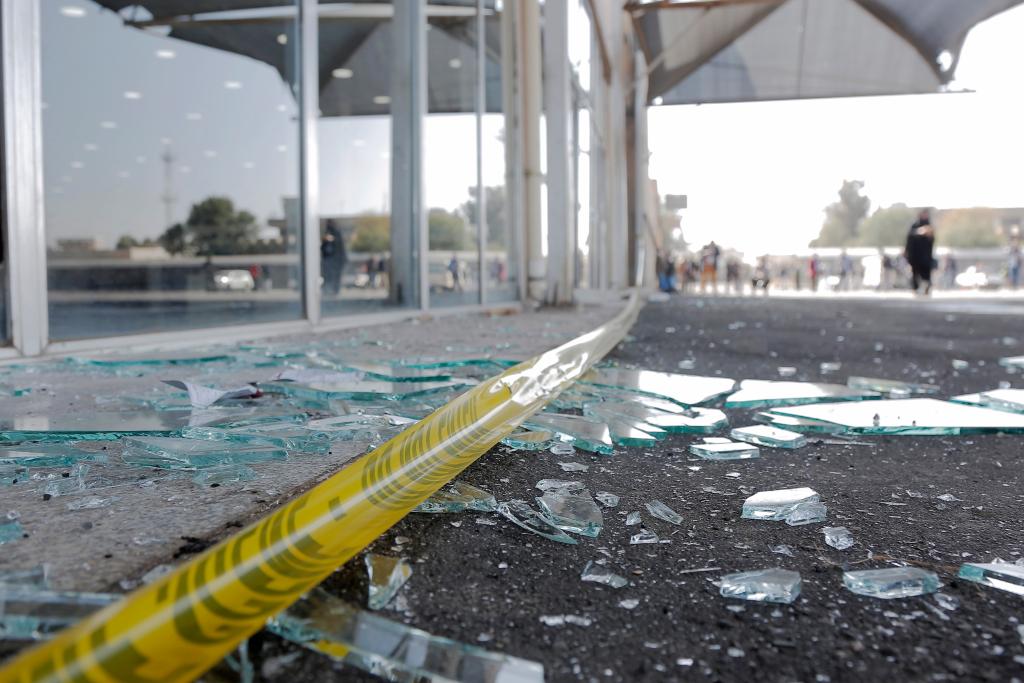 這是12月27日在也門薩那國際機(jī)場拍攝的地面上破碎的玻璃。新華社發(fā)(穆罕默德·穆罕默德攝)