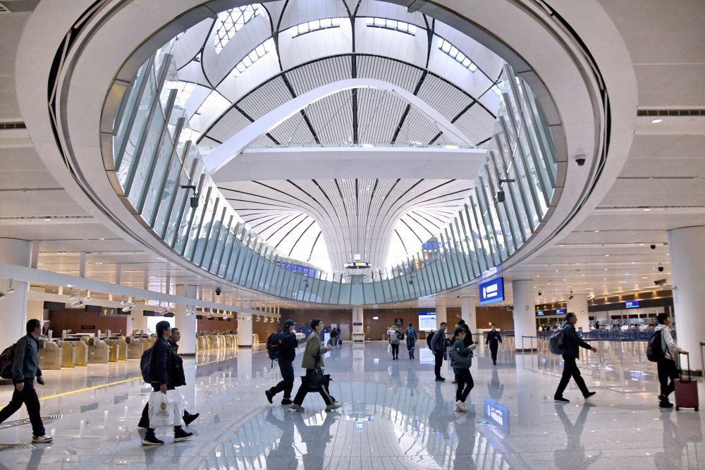2024年12月27日,外國(guó)游客在北京大興機(jī)場(chǎng)邊檢大廳準(zhǔn)備入境。新華社記者 鞠煥宗 攝