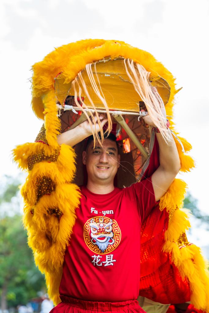 2021年,中國農歷新年成為巴拿馬全國性節(jié)日。37歲的巴拿馬人伊萬·胡斯蒂尼亞尼,每逢春節(jié)都會和家人一起出門觀看慶?;顒?,尤其是舞獅表演。出于對舞獅的喜愛,兩年前,他與兩個孩子加入擁有50多年歷史的花縣醒獅團。