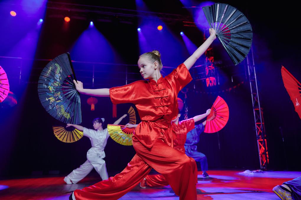 2月3日,俄羅斯圣彼得堡學(xué)生在中小學(xué)春節(jié)聯(lián)歡節(jié)上表演。新華社發(fā)(莫京娜攝)