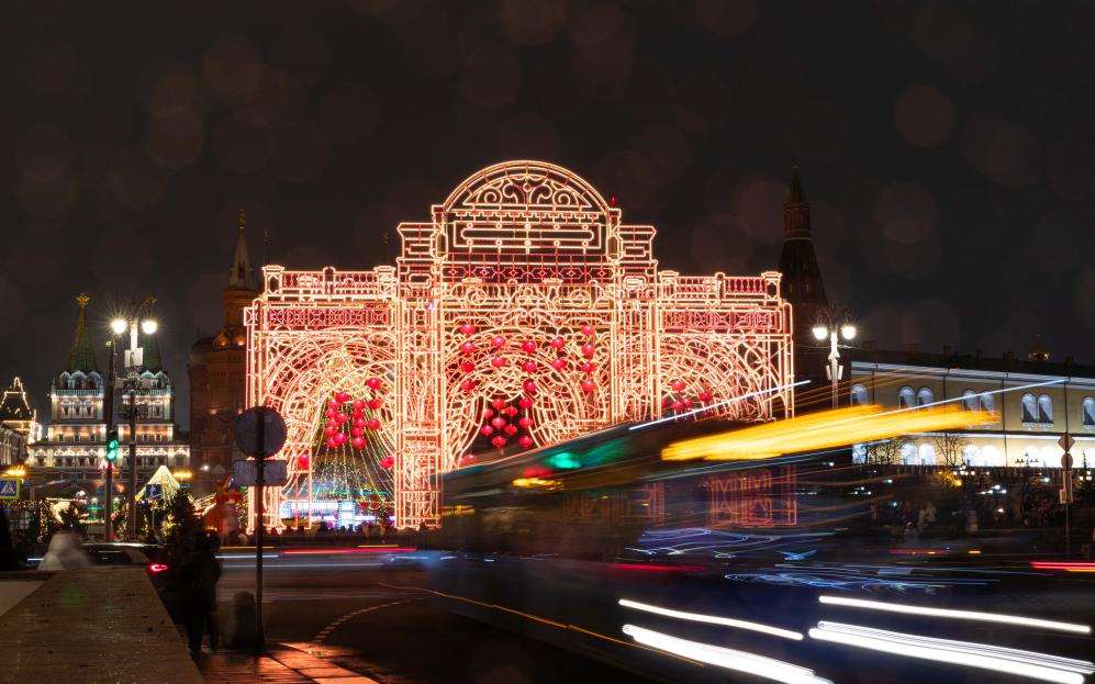 莫斯科春節(jié)慶?;顒?dòng)開幕恰逢除夕。在開幕式舉辦地——莫斯科市中心的馬涅什廣場(chǎng),節(jié)慶彩色串燈搭配成百上千的紅燈籠裝點(diǎn)一新;臨時(shí)搭建的房屋四周懸掛的“?!弊趾椭袊?guó)結(jié),將“年味兒值”拉滿;美食攤位升騰起裊裊炊煙,飄出的香氣令人垂涎欲滴。