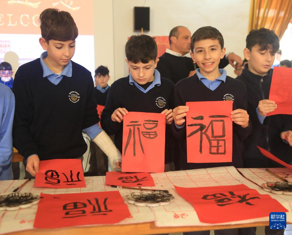 與此同時,在學(xué)校禮堂內(nèi),學(xué)生們正在熱火朝天地體驗中國書法藝術(shù)的獨特魅力。馬耳他中國文化中心的工作人員為學(xué)生們講解中國文房四寶的歷史淵源,現(xiàn)場演示書法基本技法。隨后,學(xué)生們興致勃勃地練習(xí)書寫,感受中國書法的韻味,他們在宣紙上留下的墨跡勾勒出對東方文化的向往。當(dāng)一個個工整的“?!弊?、“春”字躍然紙上時,學(xué)生們興奮不已,互相欣賞彼此的作品。