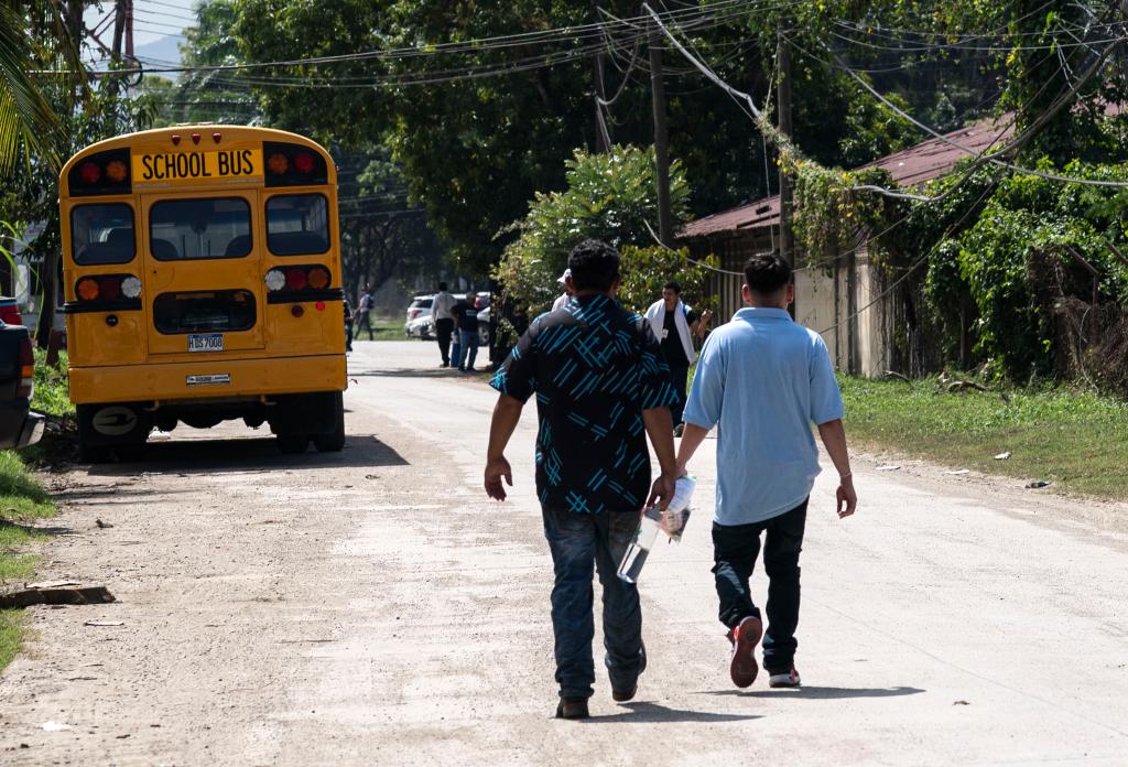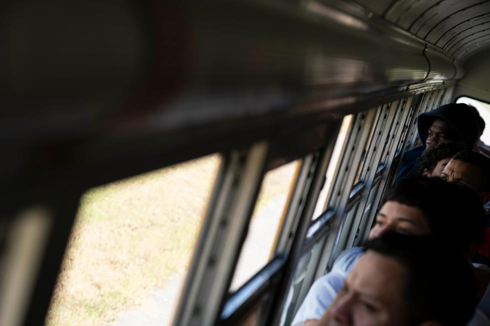 2月14日,在洪都拉斯西北部城市圣佩德羅蘇拉,返鄉(xiāng)移民乘坐返鄉(xiāng)移民援助中心的巴士前往車(chē)站。新華社發(fā)(戴維 攝)