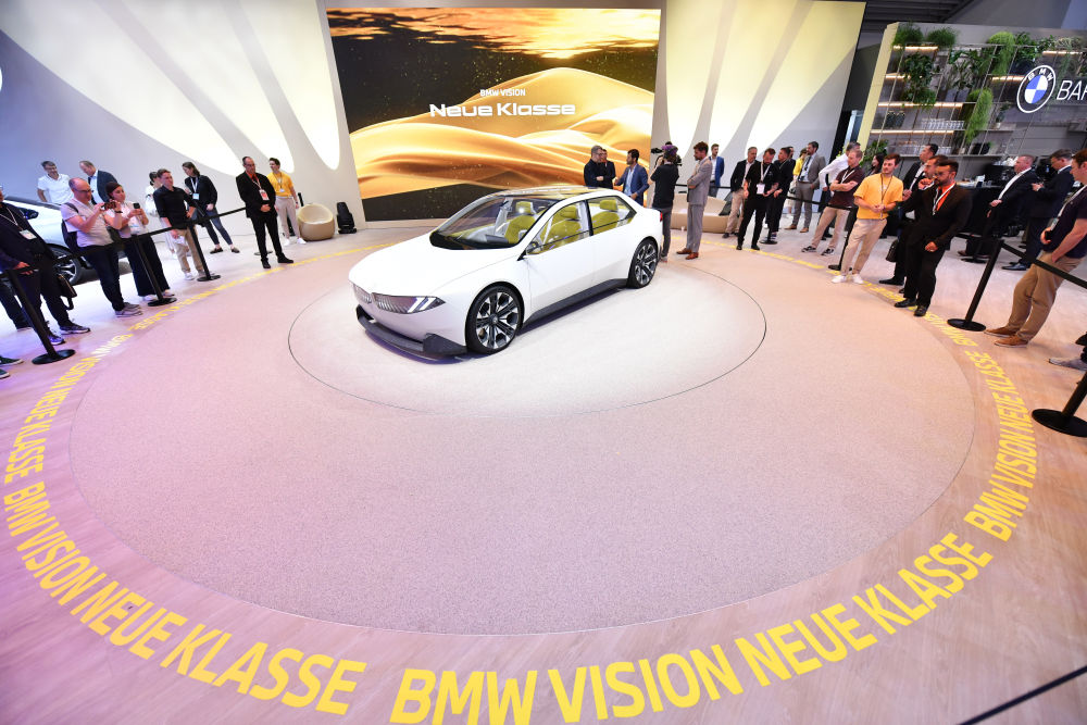 2023年9月5日,在德國慕尼黑,人們在德國國際汽車及智慧出行博覽會的寶馬展區(qū)參觀。新華社記者任鵬飛攝