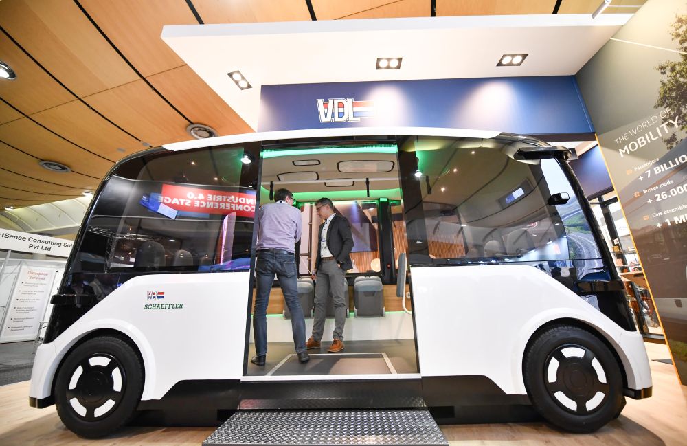 2024年4月23日,人們在德國漢諾威工博會上參觀一款無人駕駛汽車。新華社記者任鵬飛攝