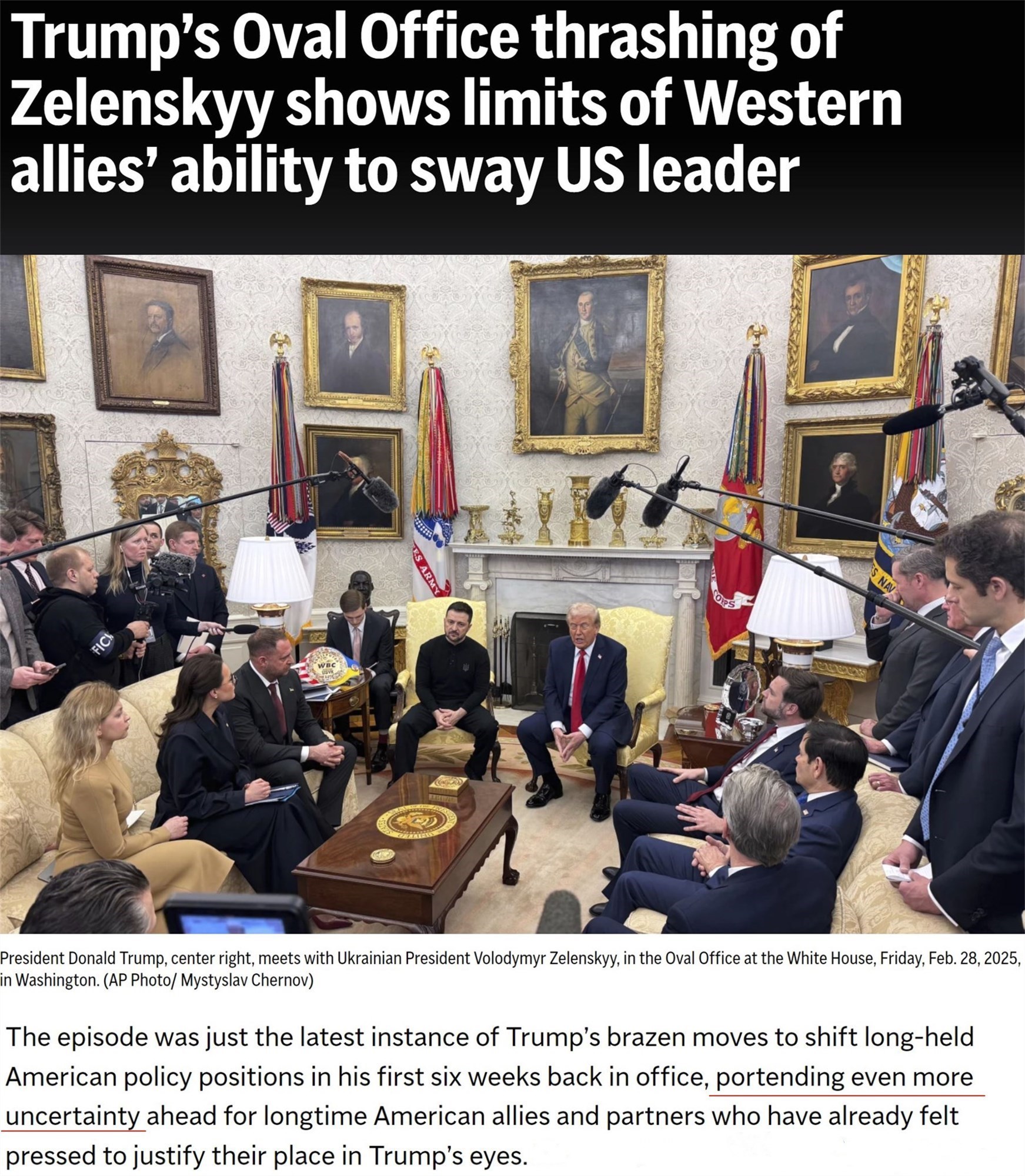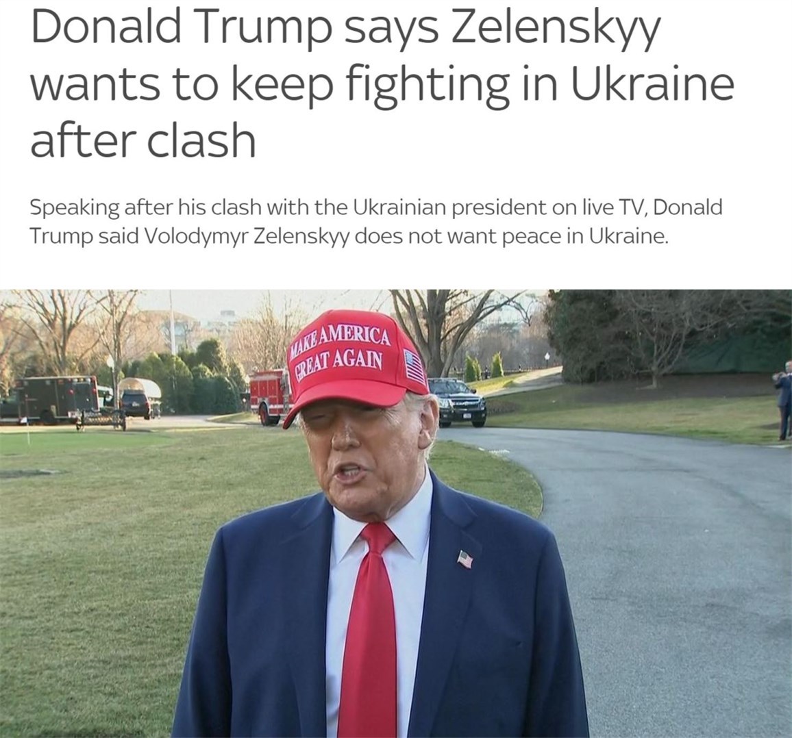 美國(guó)總統(tǒng)特朗普與到訪(fǎng)的烏克蘭總統(tǒng)澤連斯基2月28日在白宮當(dāng)著媒體的面“大吵一架”,引發(fā)國(guó)際輿論大嘩。