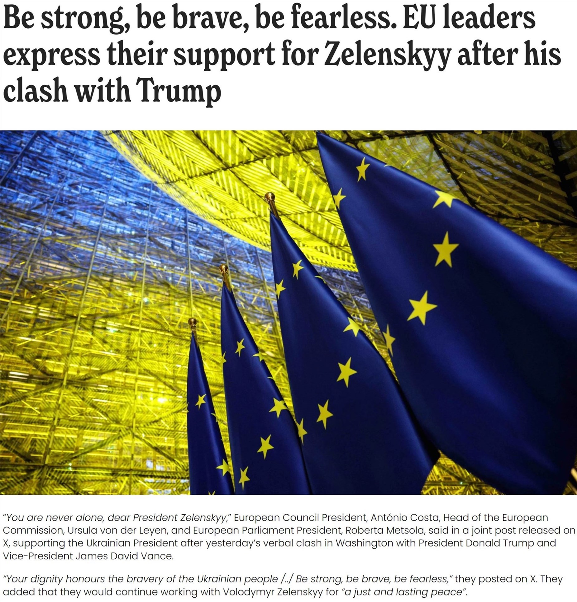 對(duì)于美烏這場(chǎng)不歡而散的會(huì)談,歐洲多國(guó)選擇站在烏克蘭一邊。
