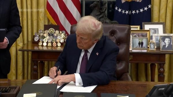當(dāng)?shù)貢r(shí)間1月20日,特朗普簽署行政命令,要求暫停美國所有對外援助計(jì)劃。 美聯(lián)社視頻截圖
