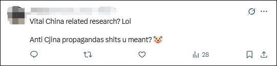 在該所X平臺賬號轉(zhuǎn)發(fā)《華爾街日報(bào)》報(bào)道的評論區(qū),有人說:“重要的中國相關(guān)研究?哈哈哈,你說的是反華宣傳吧。”