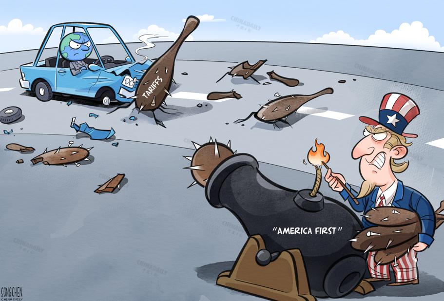 貿易保護砸自己的腳。(作者:中國日報 羅杰)