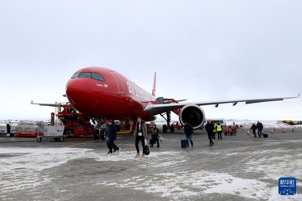 3月18日,人們乘坐飛機抵達(dá)丹麥自治領(lǐng)地格陵蘭島首府努克。新華社記者 趙丁喆 攝