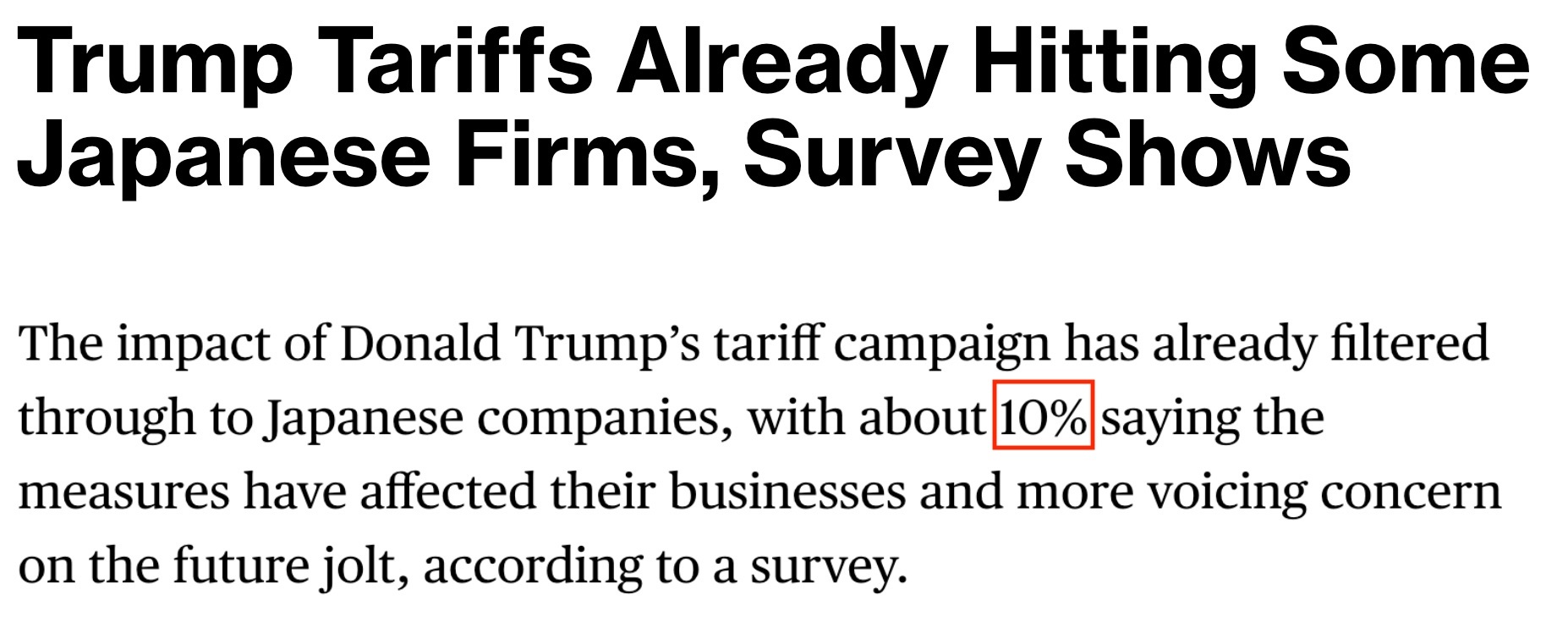 另據(jù)日本《朝日新聞》19日至20日進(jìn)行的民調(diào),多達(dá)85%的日本受訪者擔(dān)憂特朗普政府的關(guān)稅會對日本經(jīng)濟(jì)產(chǎn)生負(fù)面影響,其中43%的受訪者表示非常擔(dān)憂。