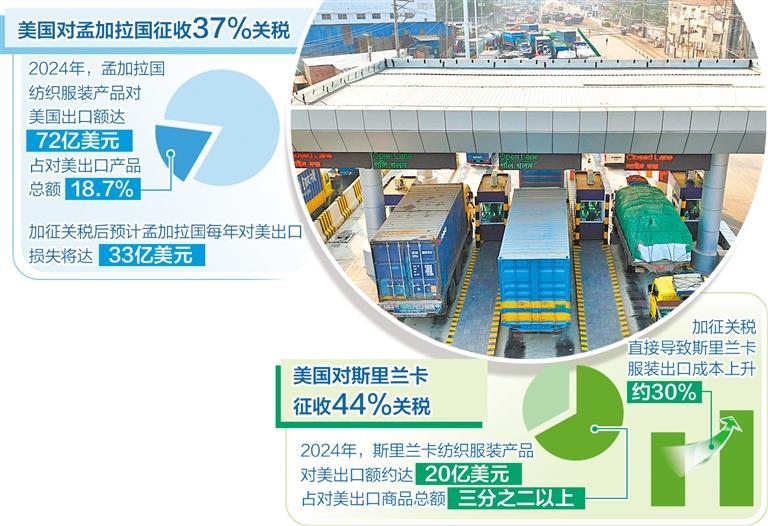 美國近期實施的所謂“對等關稅”將南亞7國中的4個國家納入制裁范圍。其中,美國對孟加拉國產品征收37%的關稅,對斯里蘭卡產品征收的關稅稅率更是提高至44%。孟加拉國目前仍是聯合國認定的最不發(fā)達國家之一,經濟發(fā)展水平相對較低;斯里蘭卡在2022年因經濟危機宣布破產,目前正處于經濟復蘇的關鍵時期。美國的關稅霸凌政策讓兩個相對脆弱的南亞中小國家貿易環(huán)境更加惡化,經濟發(fā)展面臨嚴峻挑戰(zhàn)。
