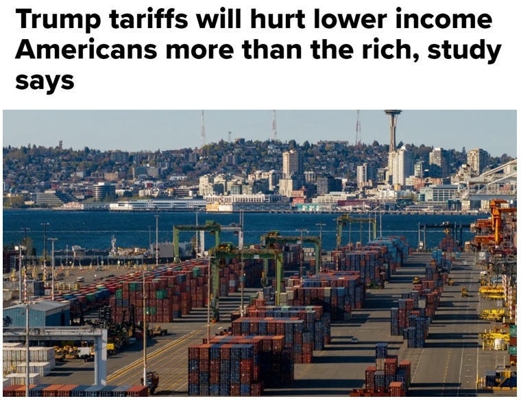 用耶魯預(yù)算實(shí)驗(yàn)室主任、白宮經(jīng)濟(jì)顧問委員會(huì)前首席經(jīng)濟(jì)學(xué)家厄尼·特德斯奇的話說,“美國(guó)低收入人群受到關(guān)稅的影響會(huì)更大”。