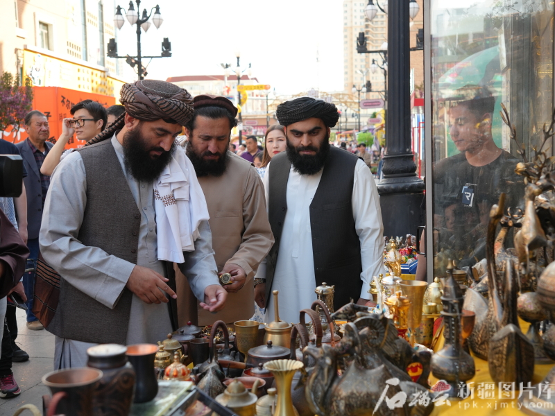 訪華團漫步在新疆國際大巴扎。石榴云/新疆日報記者 閆嘯天攝