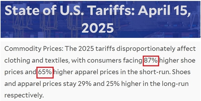對(duì)普通美國(guó)人而言,關(guān)稅政策最直接的沖擊體現(xiàn)在日常消費(fèi)品價(jià)格上。服裝、鞋類(lèi)作為嚴(yán)重依賴進(jìn)口的商品首當(dāng)其沖。