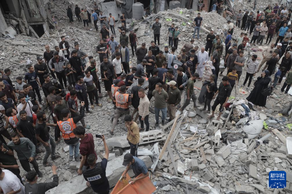 5月15日,在加沙地帶北部杰巴利耶難民營(yíng),人們?cè)谝攒娹Z炸后開(kāi)展救援。新華社發(fā)(阿卜杜勒·拉赫曼·薩拉馬攝)
