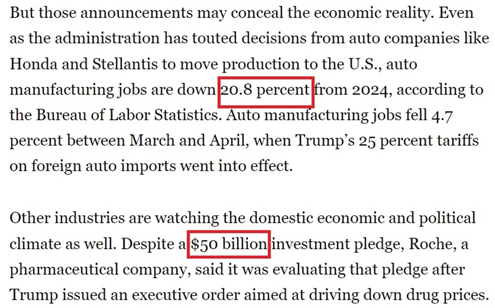 《政治報(bào)》的報(bào)道提到,在關(guān)稅政策深陷爭(zhēng)議的情況下,美國(guó)政府當(dāng)前非??释麑?duì)外展示“美國(guó)經(jīng)濟(jì)增長(zhǎng)”的跡象,以至于一些公司只要口頭表示“考慮增加在美國(guó)的產(chǎn)能”就能得到白宮的贊賞。但現(xiàn)實(shí)卻是,許多白宮吹噓的企業(yè)投資計(jì)劃要么已經(jīng)籌備多年,要么被人為夸大,不少還可能在未來(lái)生變。