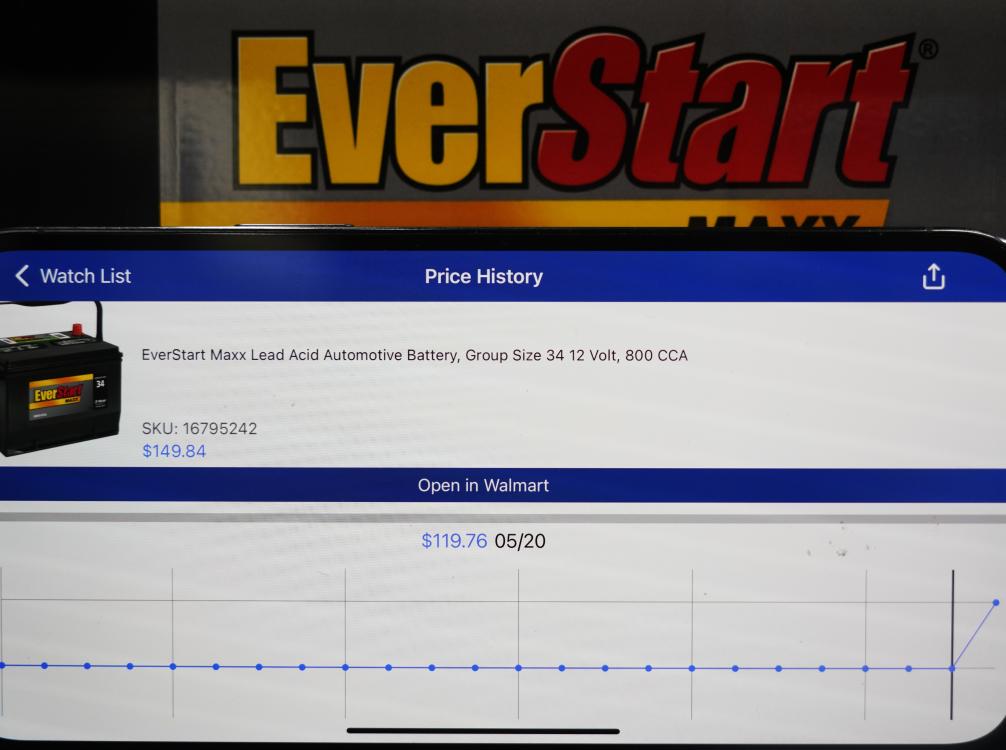 5月21日,在美國舊金山灣區(qū)圣利安卓San Leandro的一家沃爾瑪超市,價(jià)格跟蹤軟件(Walmart Tracker)顯示商品(EverStart汽車蓄電池)售價(jià)變化。新華社記者吳曉凌攝