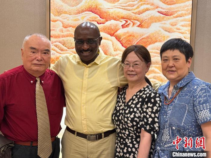 5月22日晚,來(lái)自烏干達(dá)的西蒙·穆龍閣(SIMON MULONGO)(左一)與云南昆明醫(yī)科大學(xué)第一附屬醫(yī)院的三位醫(yī)生(左起分別為納玉萍、鐘穎、李建生)重逢。陳晨攝