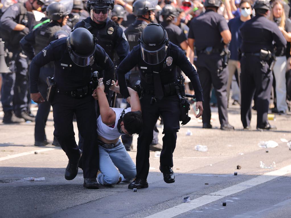 8日,抗議者與特朗普政府派遣到洛杉磯的國(guó)民警衛(wèi)隊(duì)、聯(lián)邦機(jī)構(gòu)執(zhí)法人員和當(dāng)?shù)鼐炖^續(xù)發(fā)生大規(guī)模沖突。8日中午,特朗普政府邊境事務(wù)主管湯姆·霍曼表示,將繼續(xù)在南加州地區(qū)實(shí)施針對(duì)非法移民的嚴(yán)打行動(dòng),“任何阻撓者”都將被逮捕,包括紐森和洛杉磯市長(zhǎng)巴斯。