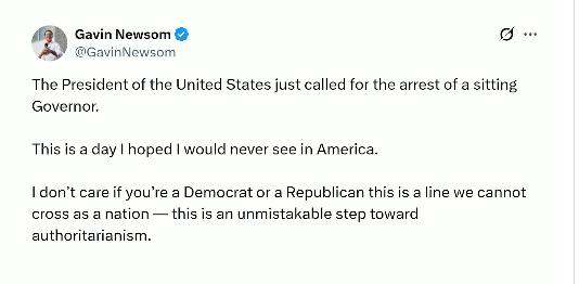 加州州長(zhǎng)紐森社交媒體發(fā)文截圖。