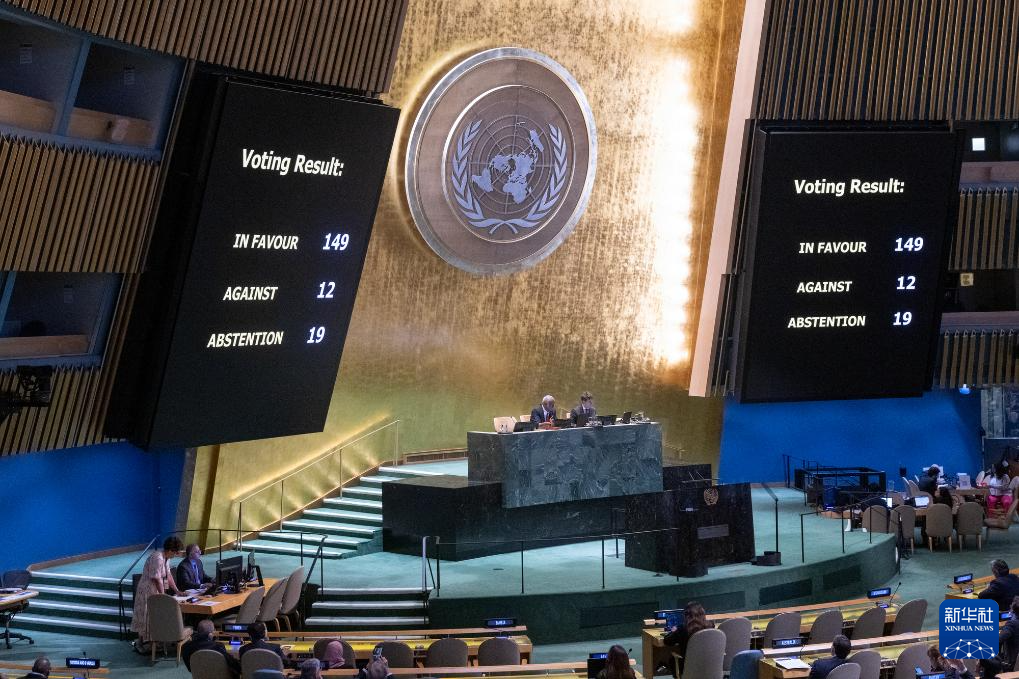 該決議以149票贊成、12票反對、19票棄權(quán)的表決結(jié)果獲得通過。除以色列和美國外,阿根廷、斐濟(jì)、匈牙利、密克羅尼西亞、瑙魯、帕勞、巴布亞新幾內(nèi)亞、巴拉圭、湯加、圖瓦盧投了反對票。